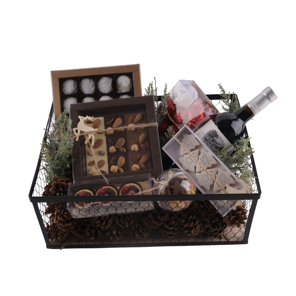 Metal Basket YP4PANMET38328GF Size:40x28x16 cm 750 ml of Wine 250 g of Chocolate 110 g...