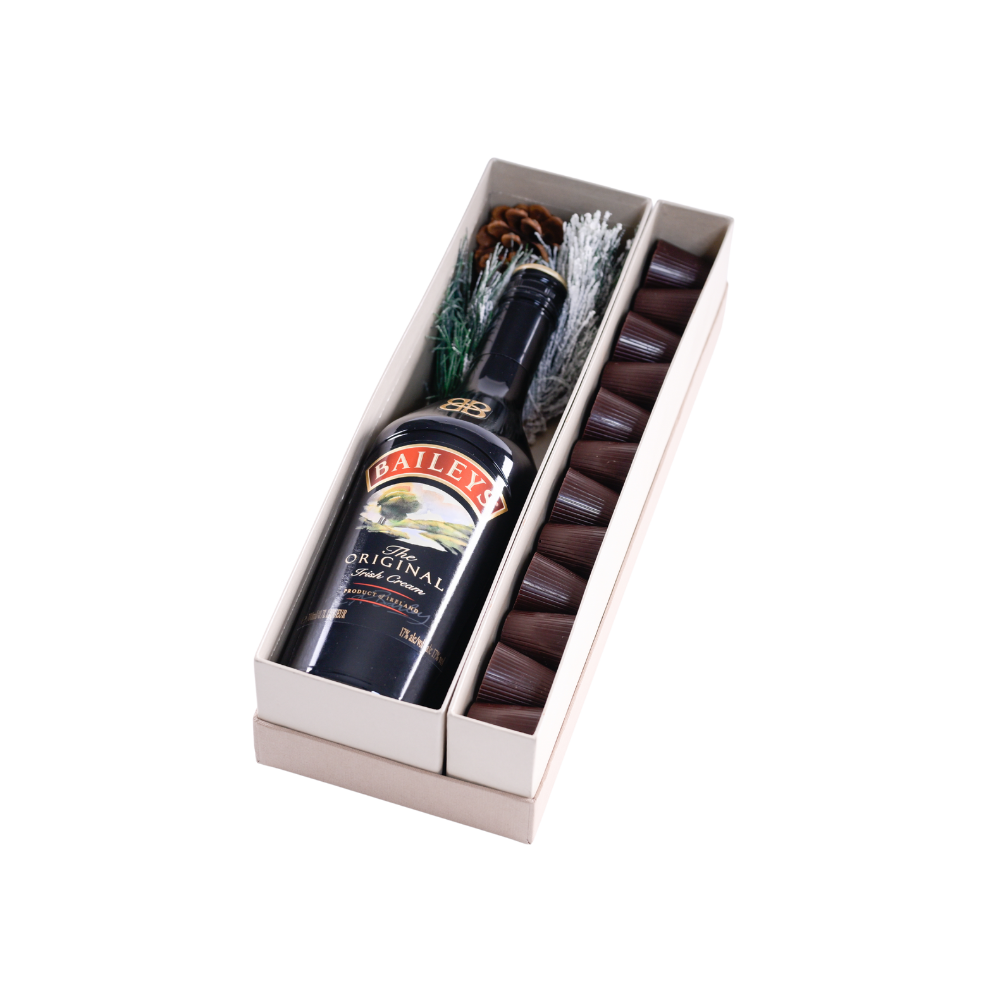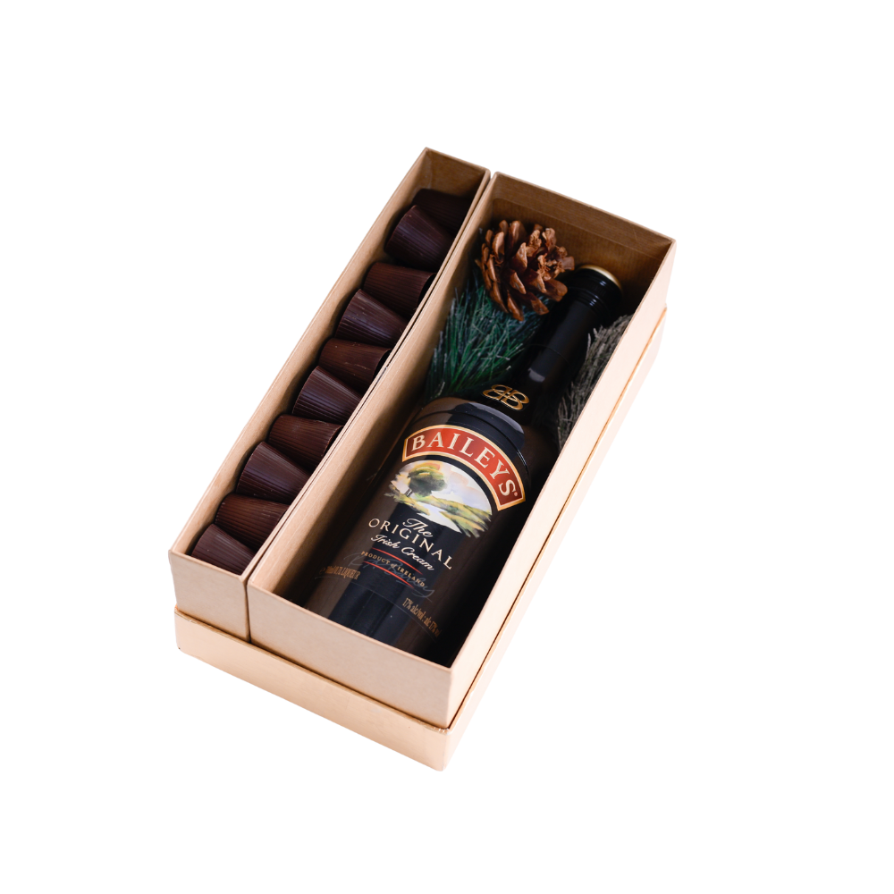 700ml of Baileys180g Maamoul Miel9 pcs of Dark Chocolate Shots 9 pcs of Milk Chocolate Shots